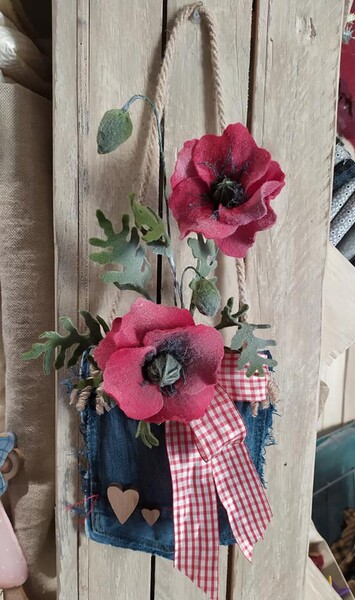 Fiori papaveri in tasca di jeans in scala 1 a 1 viene allegto un video tutorial per la lavorazione del modello.