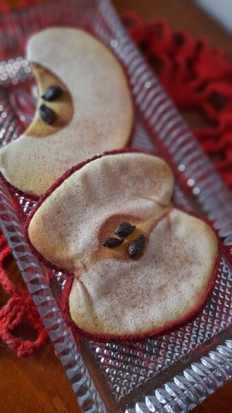 il cartamodello è in scala in scala 1 a 1, il kit comprende tutto il materiale per 6 fette di mela e i colori.
